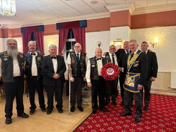 In preparation for this important event, during the Installation Meeting of Percy Lodge No. 1427 held last night, Worshipful Brother Brian Denton, Past Assistant Provincial Grand Master, presented the Provincial wreath to Worshipful Brother Peter Younger, Past National Chairman of the Widows’ Sons Masonic Bikers Association.